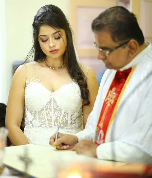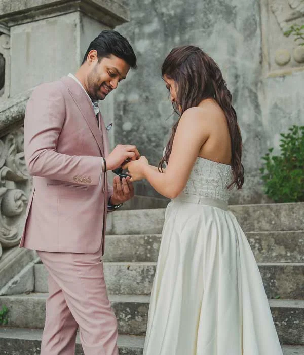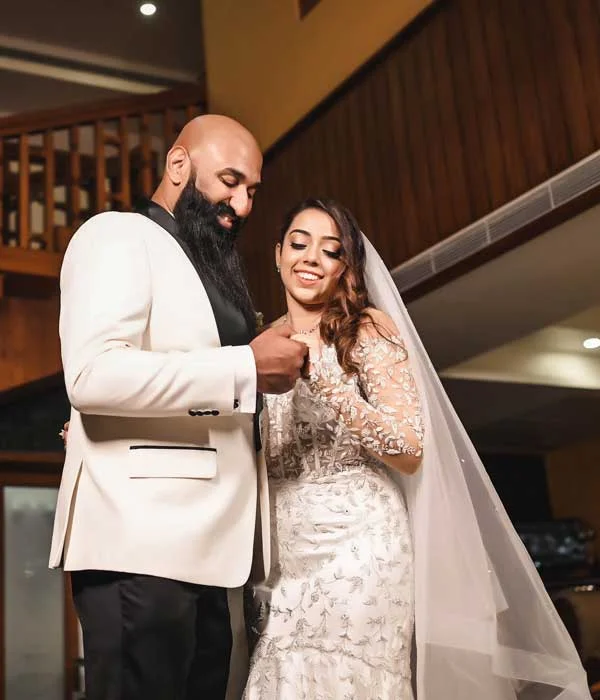 This chic and fashionable gown is perfect for the modern bride who desires both style and comfort. The illusion neckline, accented with delicate straps, adds a soft, romantic touch, while the sheer bodice introduces a subtle yet daring edge. Intricate lace hand-appliqué enhances the bodice, bringing a timeless elegance to this contemporary design. The mermaid silhouette, short in the front and long in the back, creates a striking, fashion-forward effect, allowing freedom of movement while making a bold statement. This gown effortlessly fuses tradition with trend, ensuring you look radiant and feel confident on your special day.